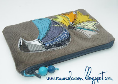 Now I’d like to show you what I got from the "pattern exploring"-story I've posted on sunday – a number of sort of "textile sketches" or mini-quilts. The result of all the influences of what has been done or seen lately : my greeny hand painted fabric scraps, patterns, colours, a couple of new finnish fabrics. This sunday I’ve made four new designs (here are two of them) that I’m exploring right now varying texture, colour and another elements. I'll use them to make new pouches and mug rugs.